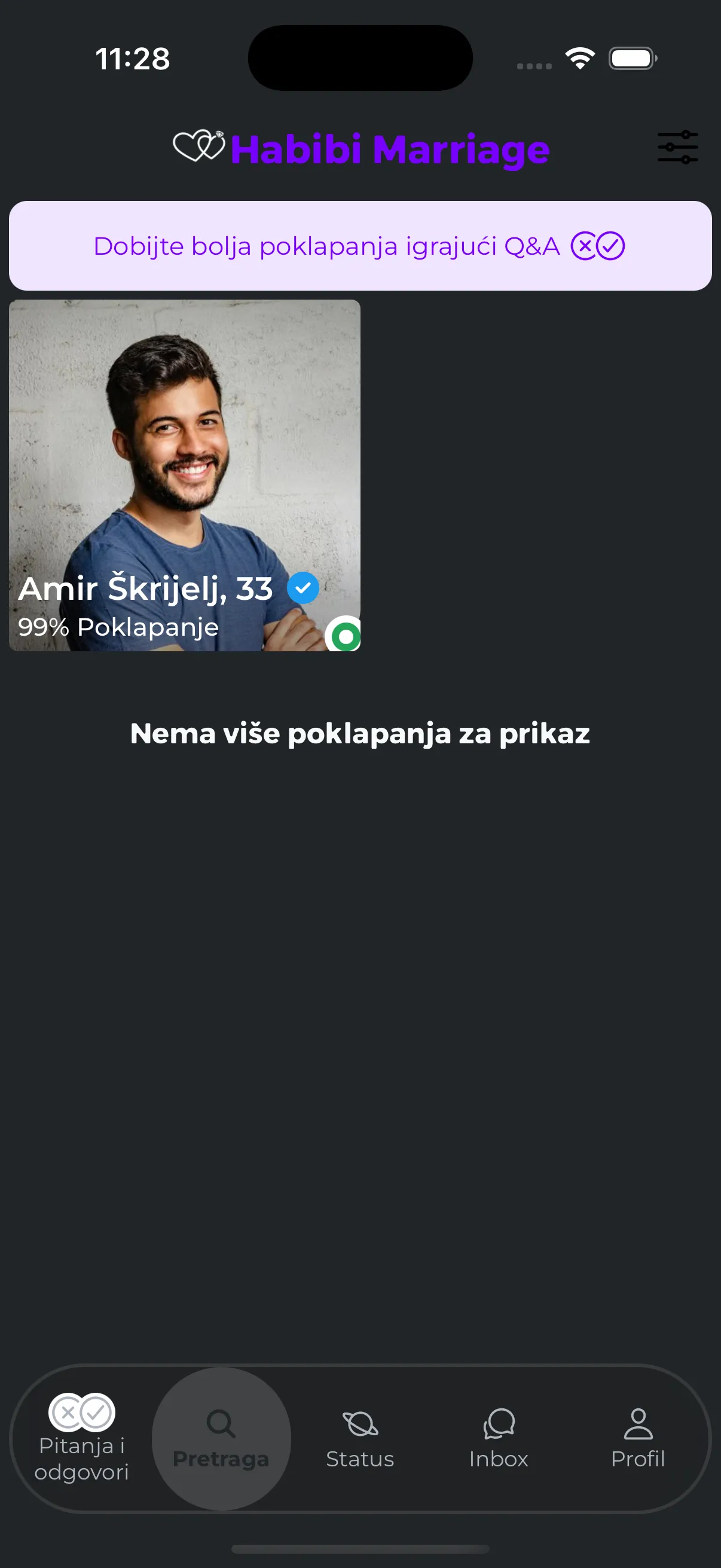 Mi smo aplikacija koja povezuje muslimane širom svijeta. Odgovarajući na specijalno osmišljena pitanja, pomoći ćemo vam da nađete svoju savršenu dušu i započnete novu stranicu u svom životu.